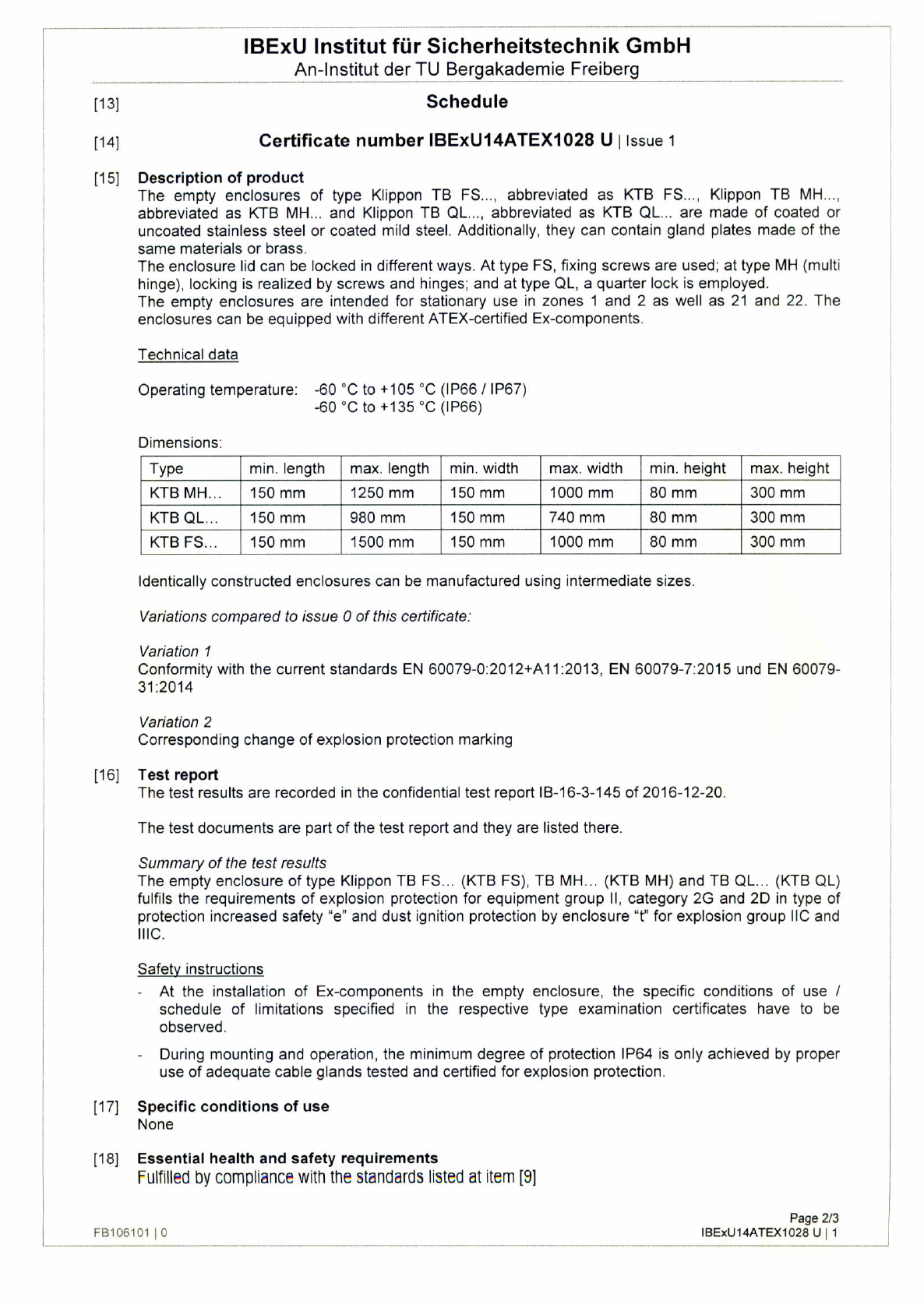 fulfils the requirements of explosion protection for equipment group II, category 2G and 20 in type of