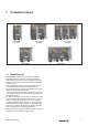 Produktbeschreibung 1 2 1 6 2 3 6 3 7 4 4 8 4 4 8 5 5 5 1 1 2 2 6 7 4 8 5 6 3 3 4 5 4 4 8 5 5 5 Bild 3.3 Übersicht der Komponenten (Beispiele, rechts: Variante mit Sicherungseinsätzen) 1 2 3 4 5 6 7 8 10 Leiterplatte Betriebsmittelkennzeichnung Überspannungsschutz DC-Leiterplattenklemme für Strangeingang DC-Leiterplattenklemme für Ausgang zum Wechselrichter Fernmeldekontakt Überspannungsschutz Sicherungseinsätze Leiterplattenklemme für Funktionserdung 2690250000/03/09.