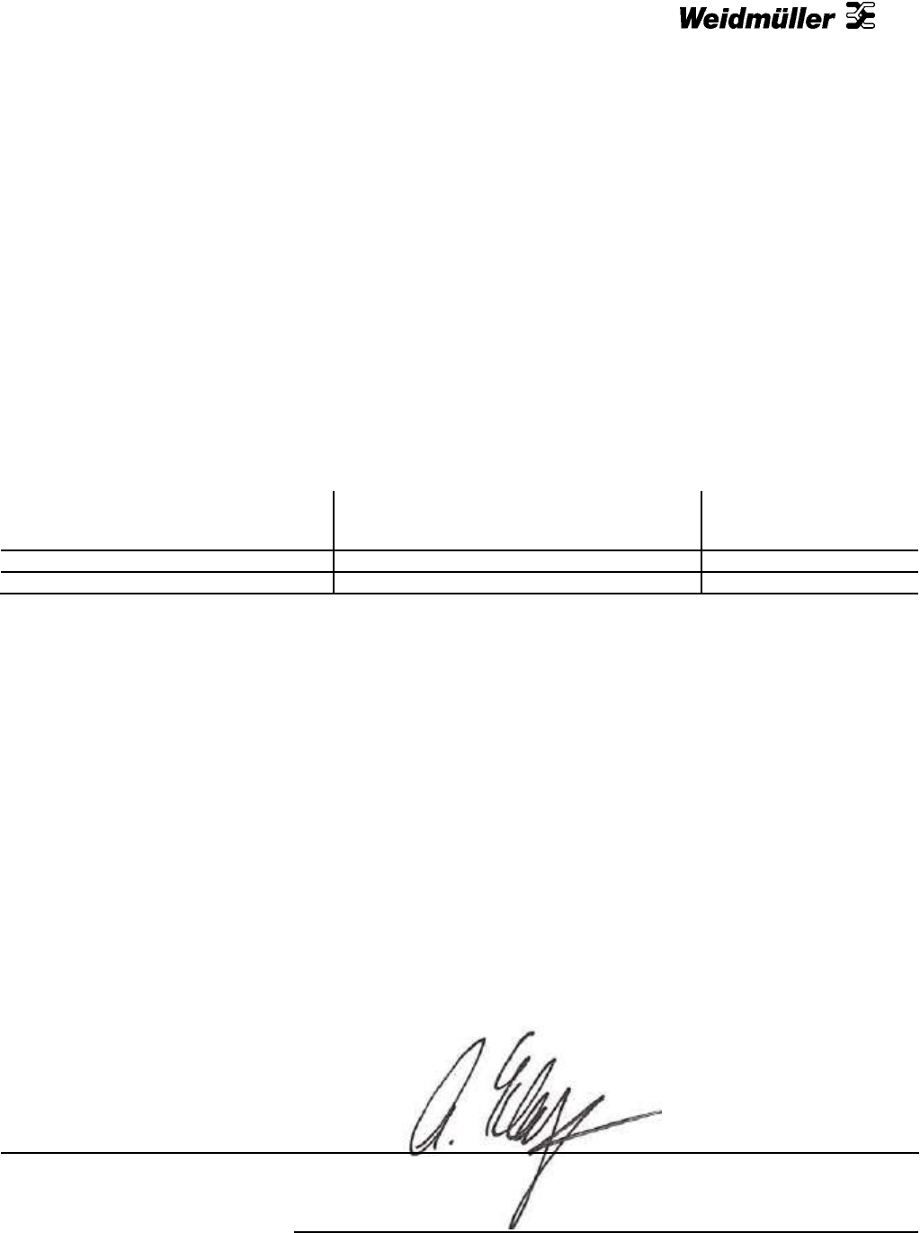 Sicherheitshinweise der mitgelieferten Produktdokumentation sind zu beachten. / This declaration certifies compliance with the indicated