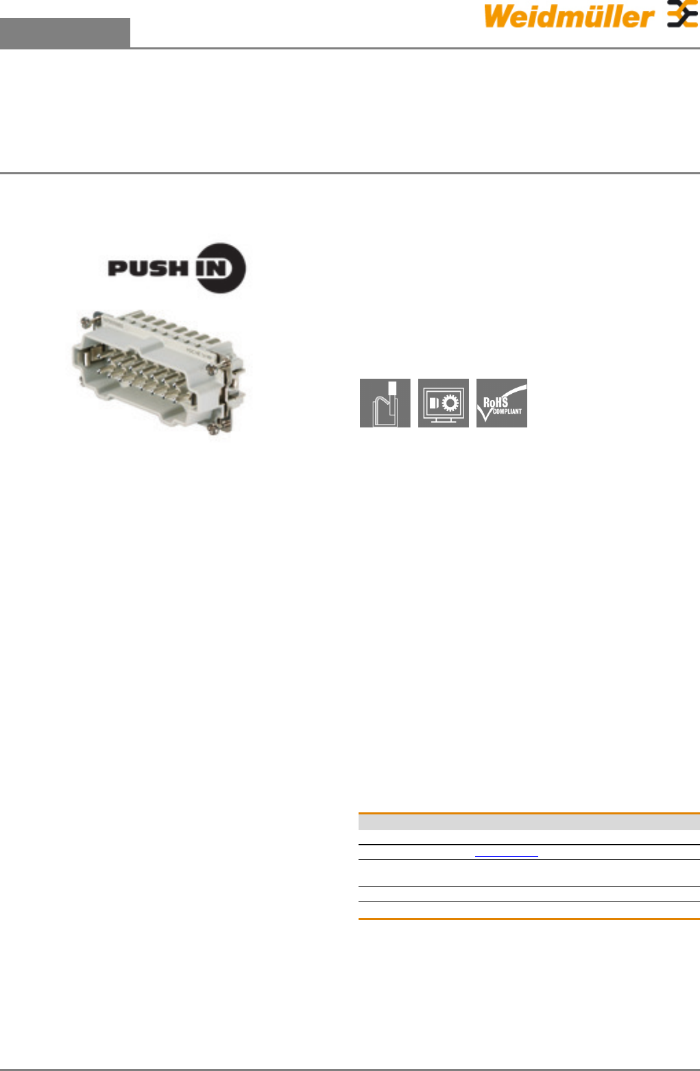 Ausführung HDC - Einsatz, Stift, 500 V, 16 A, Polzahl: 16,