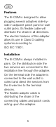 GB Features The IE-CSM is designed to allow plugging several adapters side-byside in adjacent patch panel or wall outlet jacks. Its flexible cable will distribute the strain in all directions. The electric features of this adapter allow its use in Class D cabling systems according to ISO IEC 11801. Installation The IE-CSM is always installed in pairs. On the distribution side the two services are connected to the installation line through the adapter.