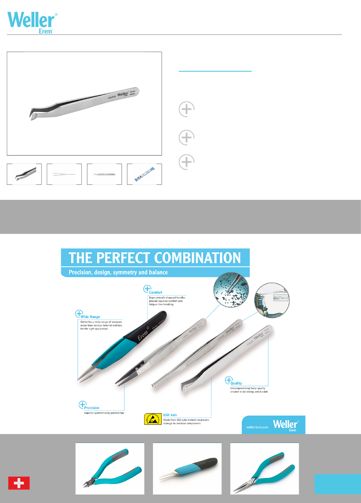 Weller Erem™ has a wide range of Tweezers, each designed to be strong, comfortable and precise. Manufactured with uncompromising Swiss quality and created for worldwide
