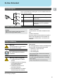 Meldung/Symptom Anzeige „- - -“ Keine Displayfunktion (Display aus) Mögliche Ursache Werkzeug wurde nicht erkannt Werkzeug defekt Keine Netzspannung vorhanden Kein Vakuum am Entlötwerkzeug Vakuum nicht angeschlossen Entlötdüse verstopft Pumpe defekt Unzureichendes Vakuum am Entlötwerkzeug keine Luft am Heißluftkolben DE DE Fehlermeldungen und Fehlerbehebung Filterkartusche am Entlötwerkzeug voll Maßnahmen zur Abhilfe Anschluss des Werkzeugs am Gerät überprüfen A