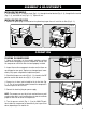 ASSEMBLY & ADJUSTMENTS INSTALLING THE WHEELS 1. Insert the bolt (Fig. 2 - 1) into the wheel (Fig. 2 - 2), through the wheel bracket (Fig. 2 - 3), through the flat washer (Fig. 2 - 4), and install the nut (Fig. 2 - 5). Tighten the nut. INSTALLING THE AIR FILTER 1. Remove the plastic plug as instructed on the yellow hang tag on the unit. Install the air filter (Fig. 3 - 1). Fig. 2 3 Fig. 3 1 2 4 5 1 OPERATION STARTING THE COMPRESSOR 1.