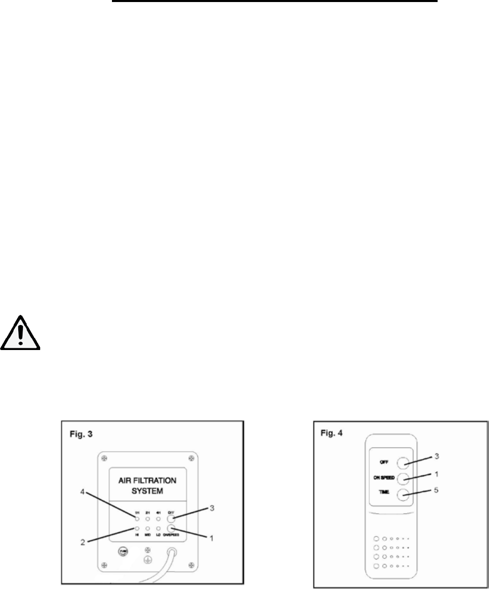 TURN ON AIR FILTER AND SPEED SETTINGS (Fig. 3 and 4)