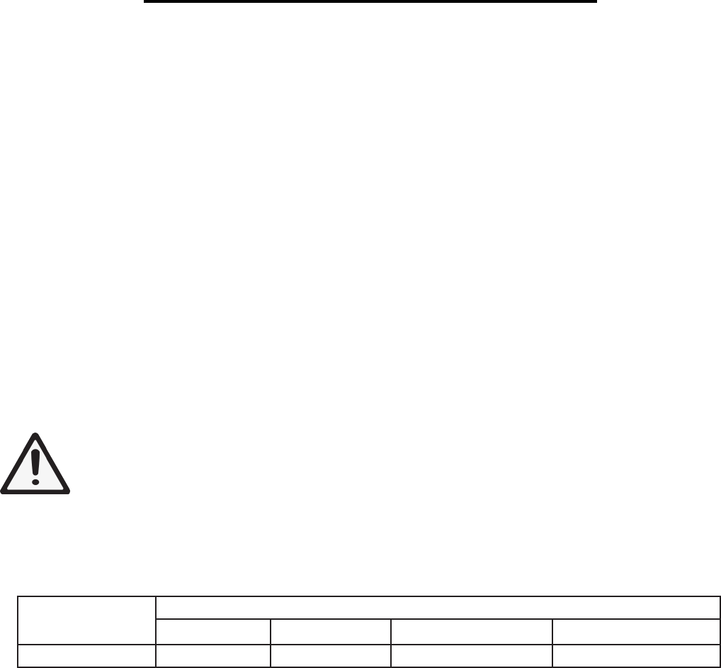 in loss of power and overheating. The table below shows the correct size to be used according to cord length and