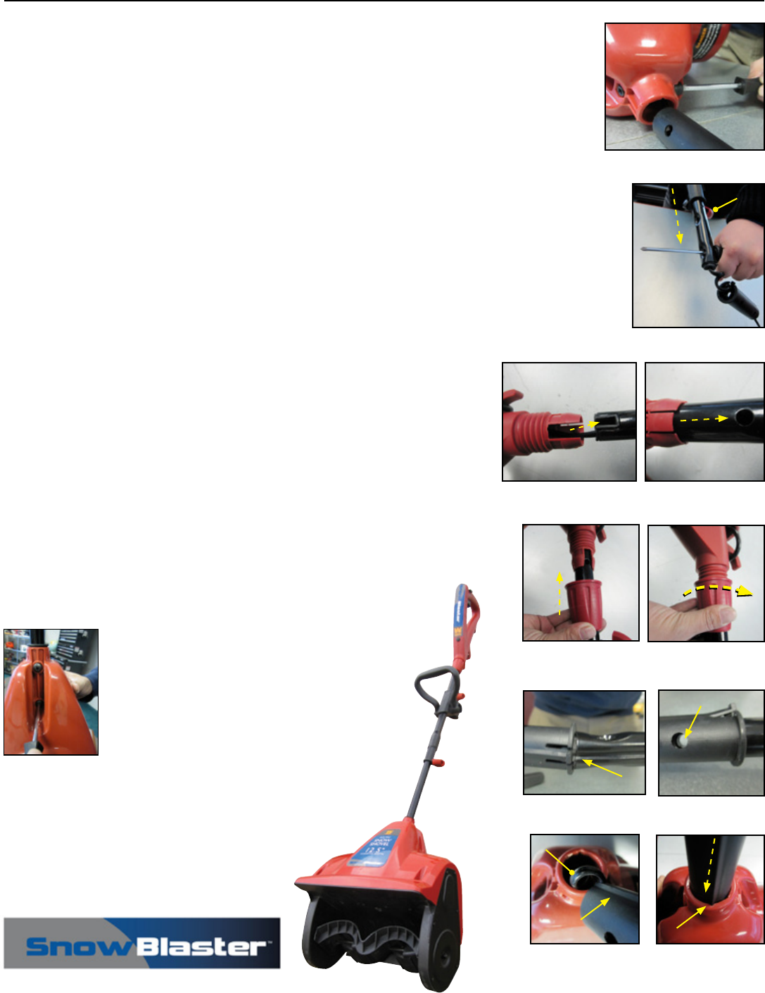 Secure the handle to the upper pipe by sliding the handle fastner knob