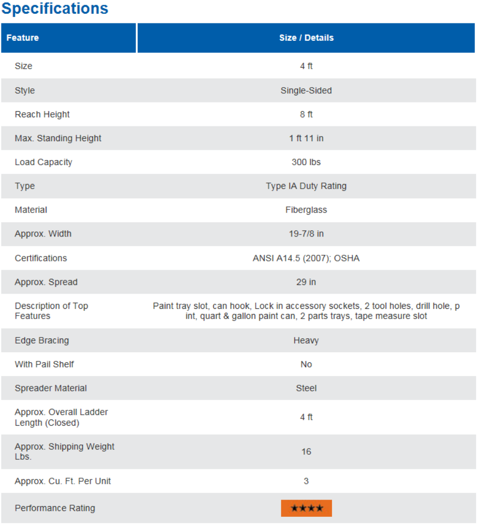 4 ft. Fiberglass Step Ladder with 300 lb. Load Capacity Type IA Duty Rating