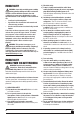 COMPONENT LIST 1. 2. 3. 4. 5. 6. 7. 8. 9. 10. 11. 12. Screwdriver bit Chuck Bit cartridge Top slide cover Soft Grip Handle Battery charging socket Charging indicator light Reverse rotating on/off switch Forward rotating on/off switch LED light Charger Top bit window (See Fig. B2) * Not all the accessories illustrated or described are included in standard delivery. TECHNICAL DATA Battery voltage 4V No load speed Max** 180/min Max torque 31.0 in-bls (3.5N.m) Chuck size 1/4’’ hex Machine weight 1.