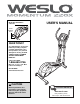 Model No. WLEL2006.0 Serial No. USER'S MANUAL Serial Number Decal QUESTIONS? As a manufacturer, we are committed to providing complete customer satisfaction. If you have questions, or if parts are damaged or missing, PLEASE CONTACT OUR CUSTOMER SERVICE DEPARTMENT DIRECTLY. CALL TOLL-FREE: 1-866-699-3756 Mon.–Fri., 6 a.m.–6 p.m. MST (closed on holidays) ON THE WEB: www.wesloservice.com CAUTION Read all precautions and instructions in this manual before using this equipment.