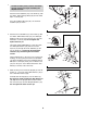 10. Insert the Left Upper Body Arm (4) into the Left Upper Body Leg (6) and attach it with two M8 x 45mm Button Bolts and two M8 Nylon Locknuts (59). Make sure that the Nylon Locknuts are in the hexagonal holes in the Left Upper Body Arm. 10 Repeat this step for the Right Upper Body Arm (5) and the Right Upper Body Leg (7). 5 4 11 7 59 6 11. Make sure that all parts of the elliptical exerciser are properly tightened. Place a mat under the elliptical exerciser to protect the floor or carpet from damage.