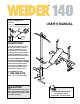 BEFORE YOU BEGIN Department toll-free at 1-800-999-3756, Monday through Friday, 6 a.m. until 6 p.m. Mountain Time (excluding holidays). To help us assist you, please note the product model number and serial number before calling. The model number is WEBE13810. The serial number can be found on a decal attached to the weight bench (see the front cover of this manual). Thank you for selecting the WEIDER® 140 weight bench.
