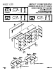 Drawer Construction repeat for all 6 drawers: 1. Insert small cam locks (A) and small dowels (C) into drawer sides. 1. Insérez 4 petites serrures à came (A) et une petite cheville en bois (C) dans chacun des panneaux latéraux des tiroirs. 1. Inserte 4 seguros pequeños (A) y pasadores pequeños(C), en el panel lateral de las gavetas. p p p p q p q 2. Insert small cam bolts (B) into drawer front like the drawing shows. 2. Insérez 8 petites vis à came (B) dans les trous. 2.