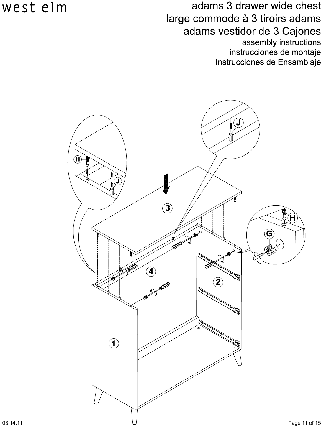 18. Attach top to sides. Insert 4 large cam locks (G).