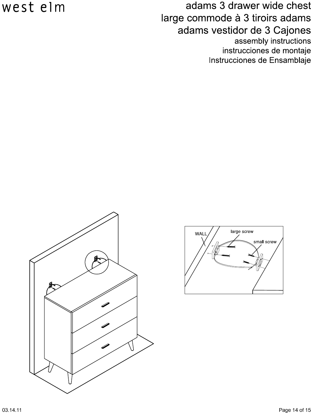 NOTEZ : Pour éviter des damages et des blessures causés par un accidentel chavirement du meuble, nous