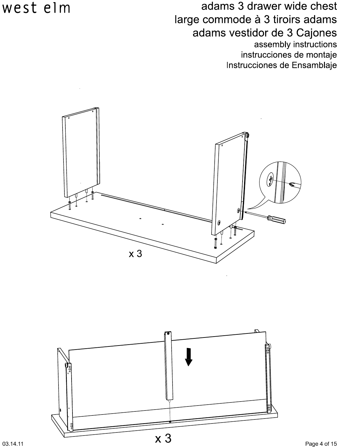 3. Anexe los paneles lateralesizquierdo y derecho al frente de la gaveta. Ajuste los 4 seguros con destornil