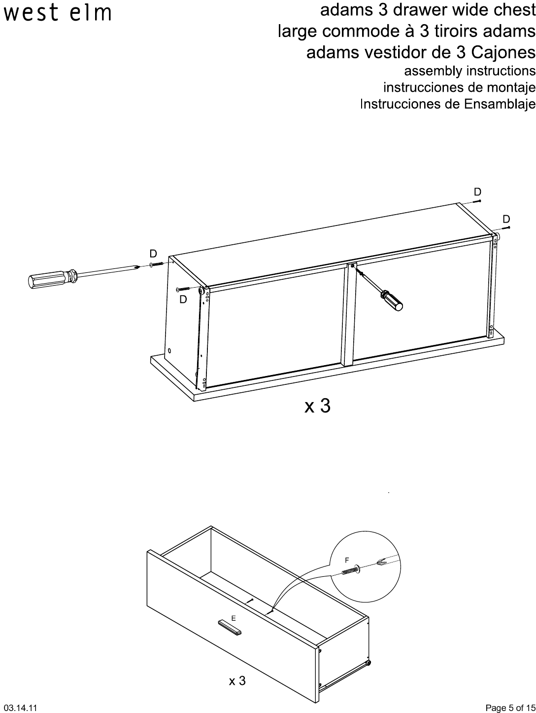 5. Conecte cajón a los lados. Inserte cuatro tornillos grandes (D) por el lado en la parte trasera y un tornillo
