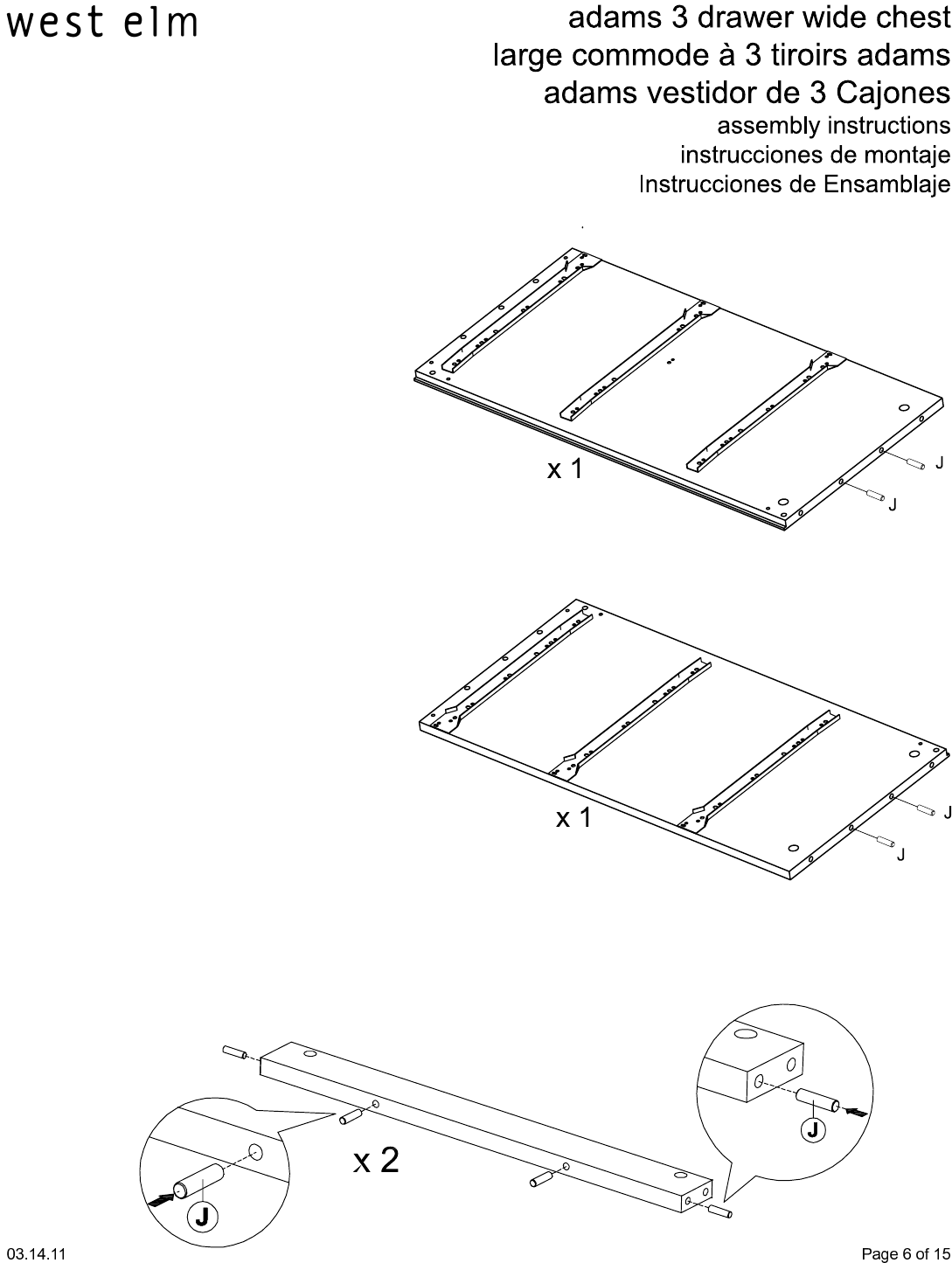 8. Insert 2 large dowels (J) into the bottom of the right side panel.