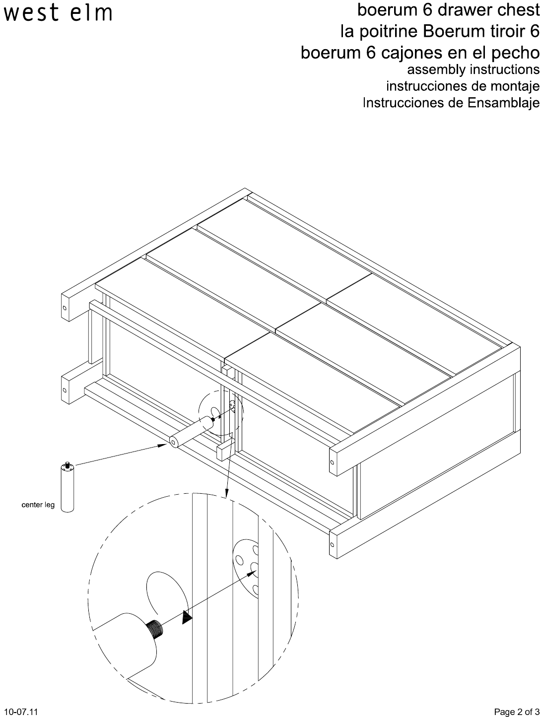 1. With help, lay case on its back. Screw in the center legs as shown. With help stand case upright.