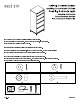 1. With help carefully lay dresser on its back onto a clean smooth surface such as carpet or cardboard. Align legs as shown. Align flat washer (A), lock washer (B), and nut (C). Tighten with supplied wrench (D). 1. Avec l’aide de déposer délicatement commode sur le dos sur une surface propre et lisse comme la moquette ou du carton. Aligner les jambes comme indiqué. Aligner la rondelle plate (A), la rondelle (B), et un écrou (C). Serrer avec la clé fournie (D). 1.