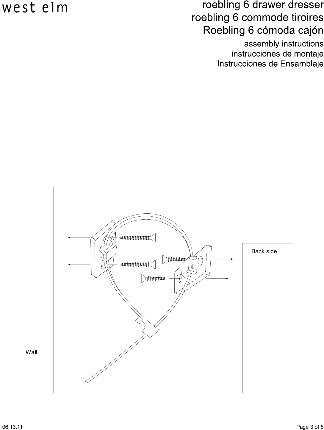 receiving end of the nylon strap. Pull to tighten the piece of furniture snug against wall.