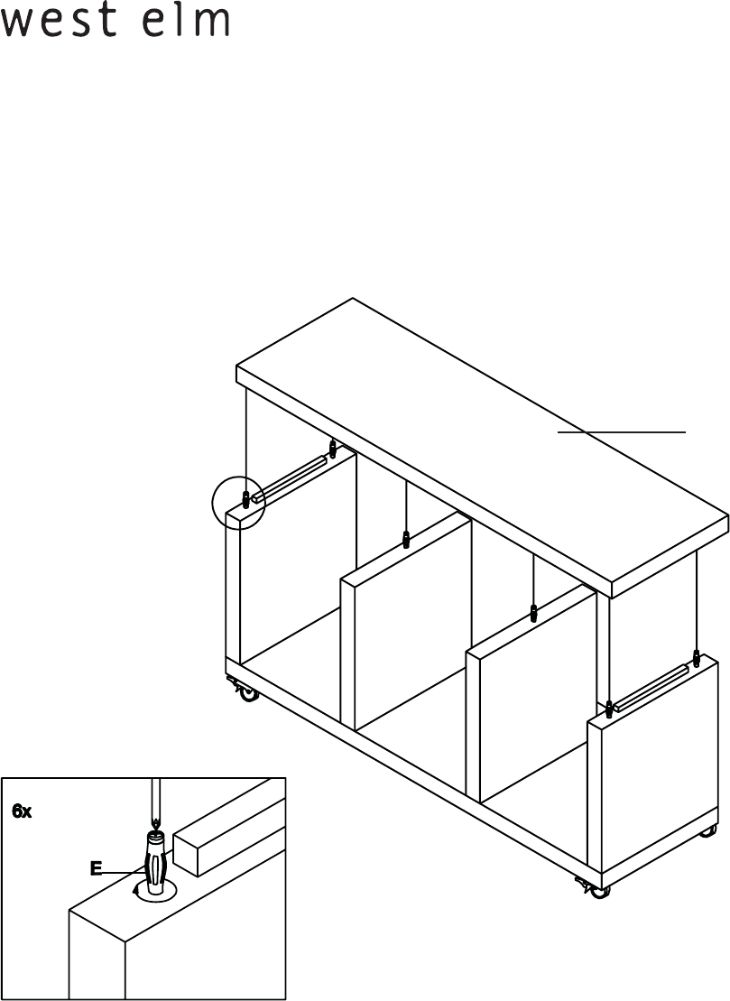 3. Rotate the storage unit to its upright position. Using a phillips head screwdriver, screw snap-locks(E) into