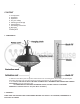 2 1. Make sure Hook ‘A’ is well attached to the heater. 2. Attach Hook ’B’ onto a secure post, beam or any solid attachment object. You can also attach hook ‘B’ on Hook ‘A’ going around an obstacle to install the heater. 3. Connect the heater to an AC 120V/60 Hz wall outlet. 4. Press on the On/Off switch to activate the heater. NOTE: wait until the heater heating element has cooled down before moving it. REMEMBER, portable electric heaters are designed for spot heating or as a supplementary heat source.