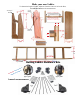 5. Once all the steps are assembled onto one of the side rails, position the side rail on its side with the steps pointing up. 6. Apply a thin film of glue on the ends of each step and in the dado of the other rail, along with the holes in the sides of the rail (for the top turned rung) and the ends of the top turned rung. 7. Properly align each step as well as the top turned rail into its corresponding dado/hole, use the supplied 1-3/4” washer-head screws to fasten the steps into place. 8.