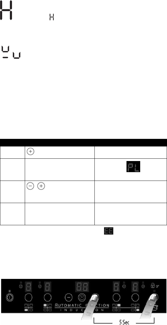 Per attivare la funzione, premere il tasto “+” fino a quando “P” appare sul display. Dopo 5 minuti di utilizzo della funzione Booster (temperatura massima),