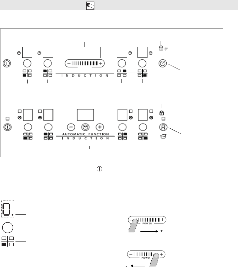 Щоб вимкнути конфорку, натисніть відповідну кнопку і утримуйте її принаймні 3 секунди.