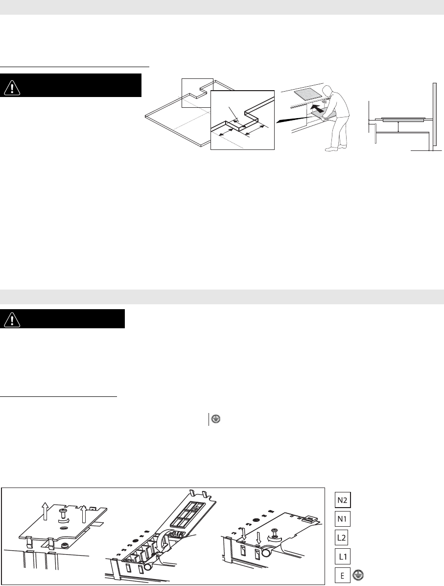 • Для належної роботи приладу не перекривайте обов'язковий мінімальний просвіт між варильною панеллю та верхнім краєм меблевого корпусу (не