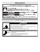 IMPORTANTES INSTRUCTIONS DE SÉCURITÉ ■ ■ ■ ■ ■ ■ Nettoyer la table de cuisson avec prudence – Si une éponge ou un chiffon mouillé est utilisé pour essuyer les renversements sur une surface de cuisson chaude, éviter les brûlures causées par la vapeur chaude. Certains nettoyants peuvent produire des émanations désagréables lorsqu’ils sont utilisés sur une surface chaude.