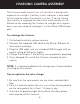 CHARGING CAMERA ASSEMBLY The Camera under normal use, will maintain a charge with exposure to sunlight. A battery status indicator is provided on the monitor when the camera is in use. If you’re storing your vehicle in a garage for more than a one month, or are otherwise not exposing the Camera to sunlight on a regular basis, you may need to recharge it via the Micro USB charge port. To recharge the Camera: 1. If attached to vehicle, please remove. 2.