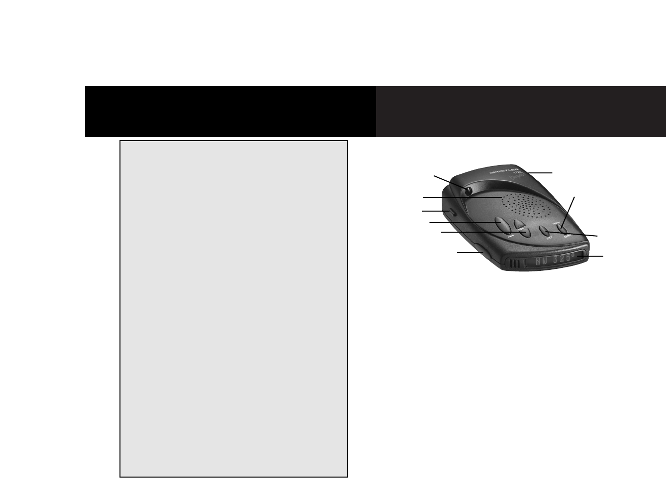 warnings for X, K, Ka band radar, safety radar, laser and