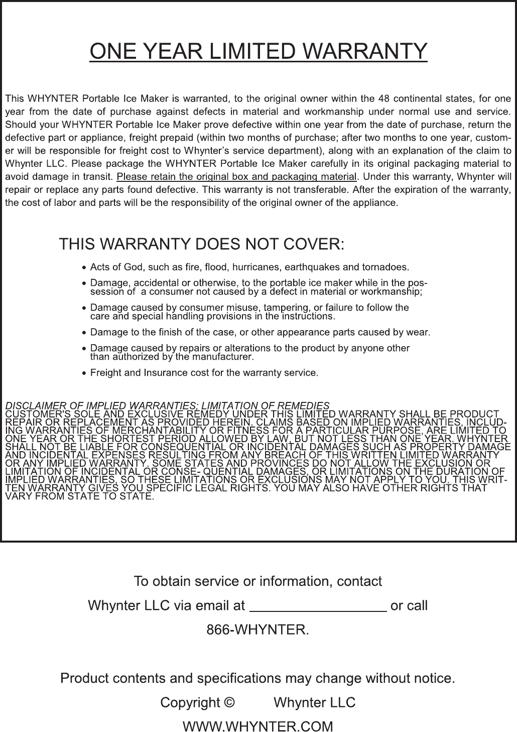 Whynter Manuals