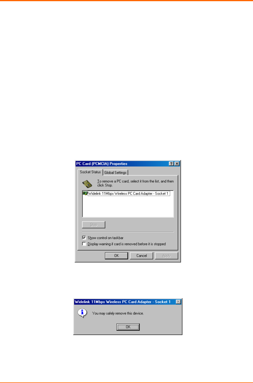 Click on Socket Status window and select Widelink 11Mbps Wireless PC cards adapter