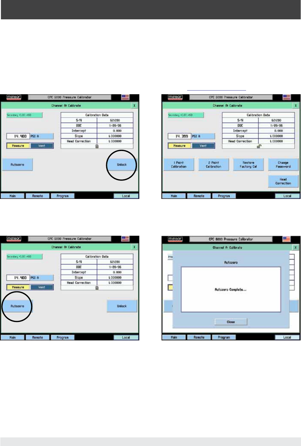 [Autozero] Key: Press this key to have the CPC 6000 automatically re-zero all turndowns that can