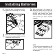Installing Batteries 1. Open the door at the bottom of the camera by unlatching the locking tab. 2. With the camera facing open, open the battery compartment cover by sliding the latch to the left. 3. With the bottom of the camera towards you, Make sure to insert the batteries into the camera with the positive ends towards you where marked positive and the negative ends towards you where marked negative. NOTE: Do not mix old and new batteries.
