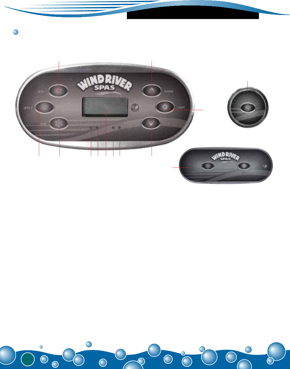 E) Jets 1 Button... The Jets 1 Button will turn on the pump that runs up to half of the jets in a two-pump