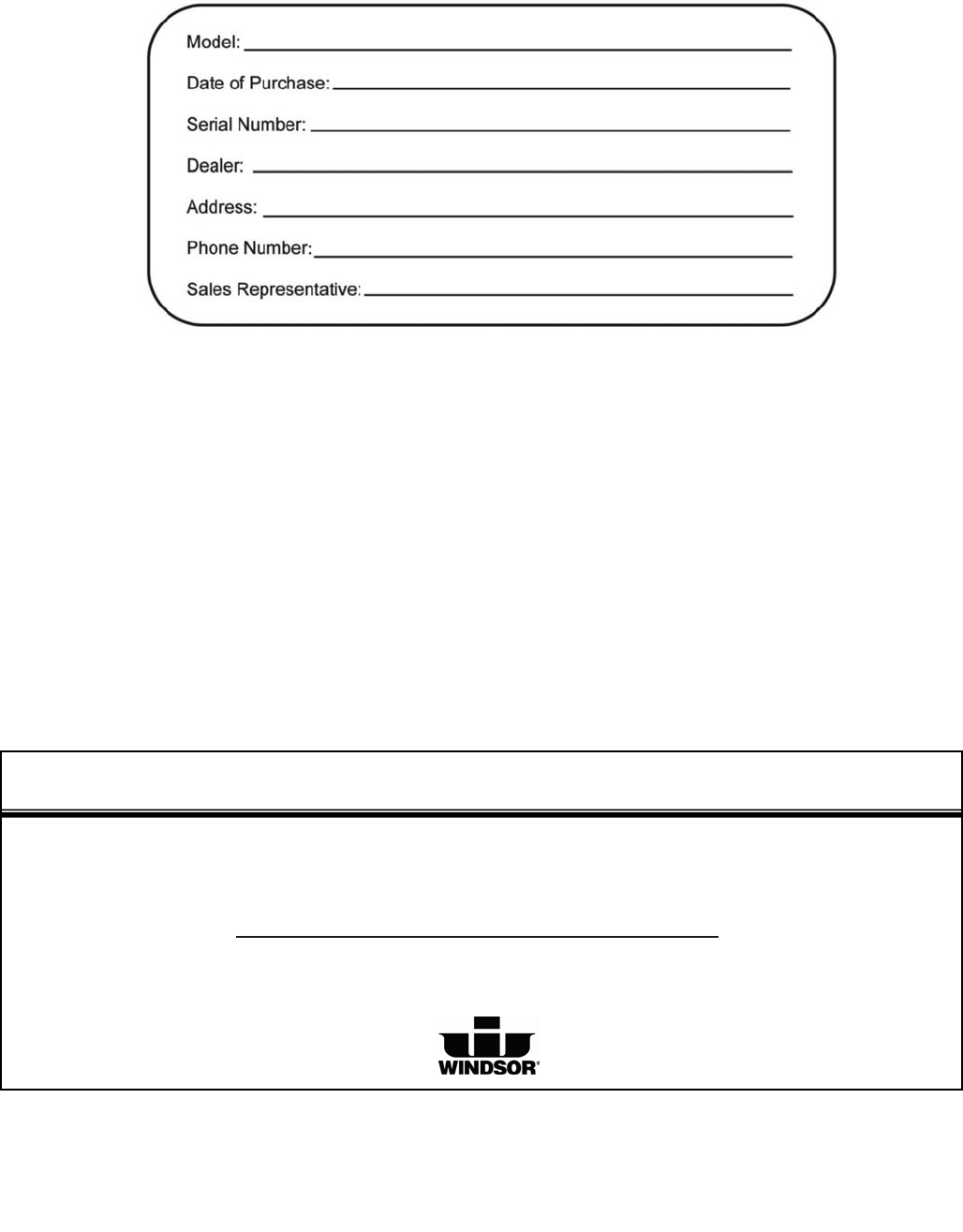Thank you for purchasing a Windsor product. Warranty registration is quick and easy.