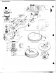 SCRUB DECK/BRUSH MOTOR 1. Remove (4) screws holding motor shroud. 4. Disconnect motor leads from terminal block. 5. Remove (4) screws holding brush motor to scrub deck. 7. Squeegee tracking can be controlled by adjustin tension of squeegee springs. NOT%: Position recovery hose as shown before making adjustments. 2. Remove batteries and squeegee assembly. Lay machine on side. 3. Remove center screw holding drive plate. Slide drive plate off motor shaft. Brush Motor 6.