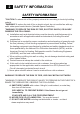 SAFETY INFORMATION 3 D. Use an extinguisher ONLY if: 1. You know you have a Class ABC extinguisher, and you already know how to operate it. 2. The fire is small and contained in the area where it started. 3. The fire department is being called. 4. You can fight the fire with your back to an exit. WARNING-TO REDUCE THE RISK OF FIRE, ELECTRIC SHOCK, OR INJURY OBSERVE THE FOLLOWING: a) Use this unit only in the manner intended by the manufacturer, if you have questions, contact the manufacturer.