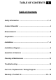 TABLE OF CONTENTS 1 Table of Contents Safety Information .............................................................. 2 – 3 Content Checklist ..................................................................... 4 Measurements ........................................................................... 5 Preparation ................................................................................ 6 Installation ...........................................................................