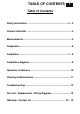 TABLE OF CONTENTS 1 Table of Contents Safety Information .............................................................. 2 – 3 Content Checklist ..................................................................... 4 Measurements ........................................................................... 5 Preparation ................................................................................ 6 Installation ...........................................................................