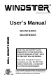 www.windsterhood.com User’s Manual WALL MOUNT SERIES WS-96TB30SS WS-96TB36SS NOTE: PLEASE INSPECT HOOD IMMEDIATELY UPON RECEIVING. CLAIM OF DAMAGE AFTER 7 DAYS OF DELIVERY WILL BE DENIED. This unit is designed for indoor residential use only. DO NOT USE OVER A WOOD GRILL OR MOUNT IN OUTDOOR ENVIRONMENT. Please read this operation manual thoroughly before using your range hood. Store it in a safe location for when you need to reference it in the future.