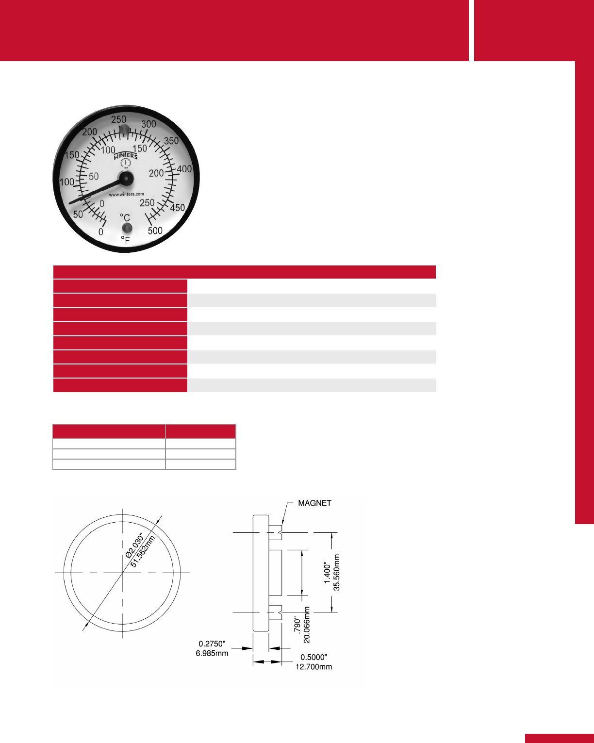Dial 2”(50mm)aluminumwithblackandredmarkings