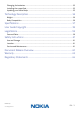 Document Release Overview Release date Modifications May 2016 v1.0 First release December 2016 v2.0 Update of: “Legal Notice” on page 59 August 2017 v3.0 Update of: ““Disabling body composition and heart rate measurements” on page 25 Nokia graphic chart The screenshots in this manual are used for explanatory purposes. Your actual screens may differ from the screenshots in this manual. Nokia Body+ v3.