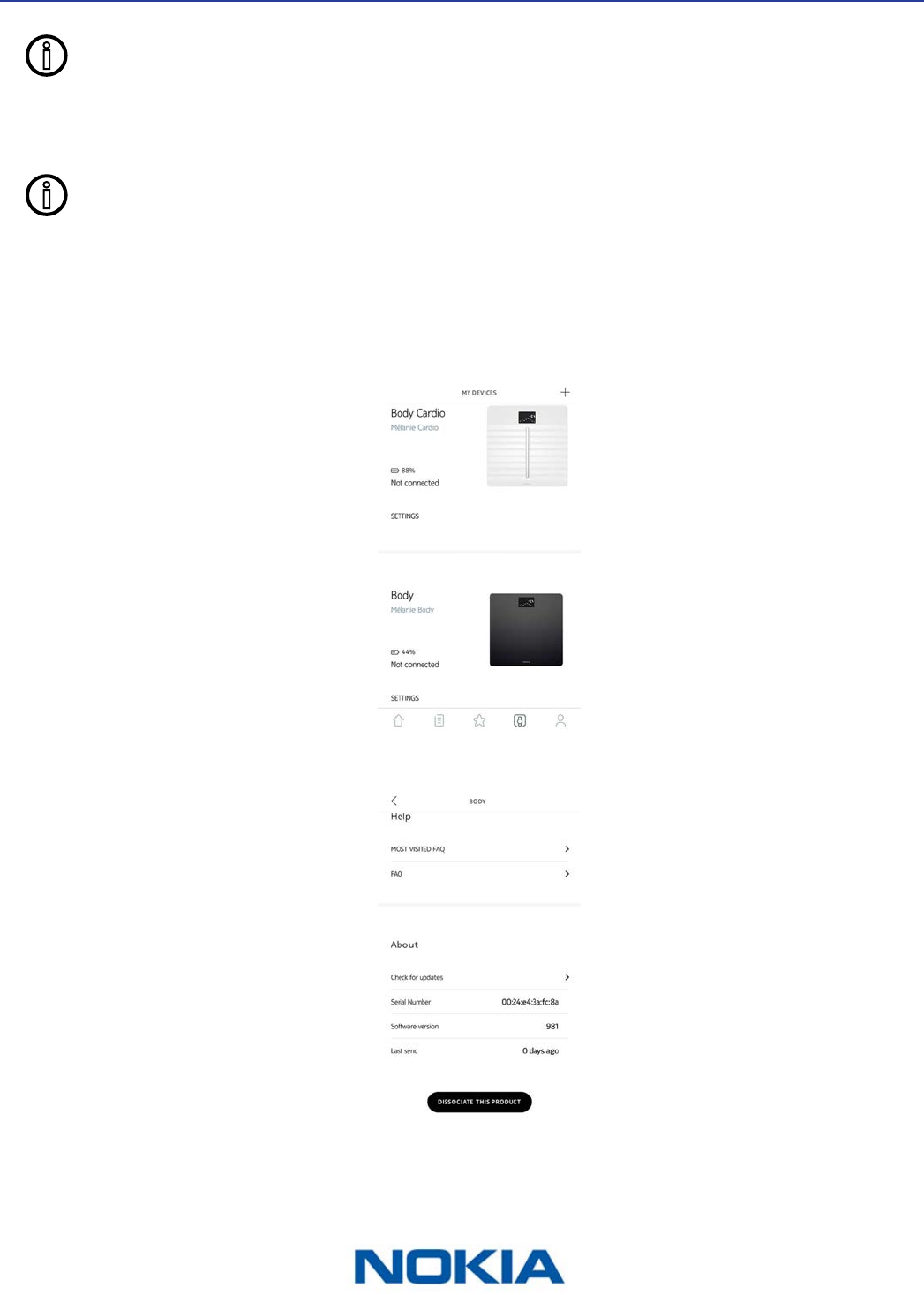 Dissociating your Nokia Body allows you to remove it from your account.