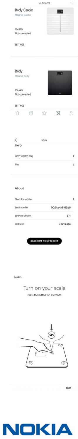 5. Press the button at the back of the scale and tap Next.