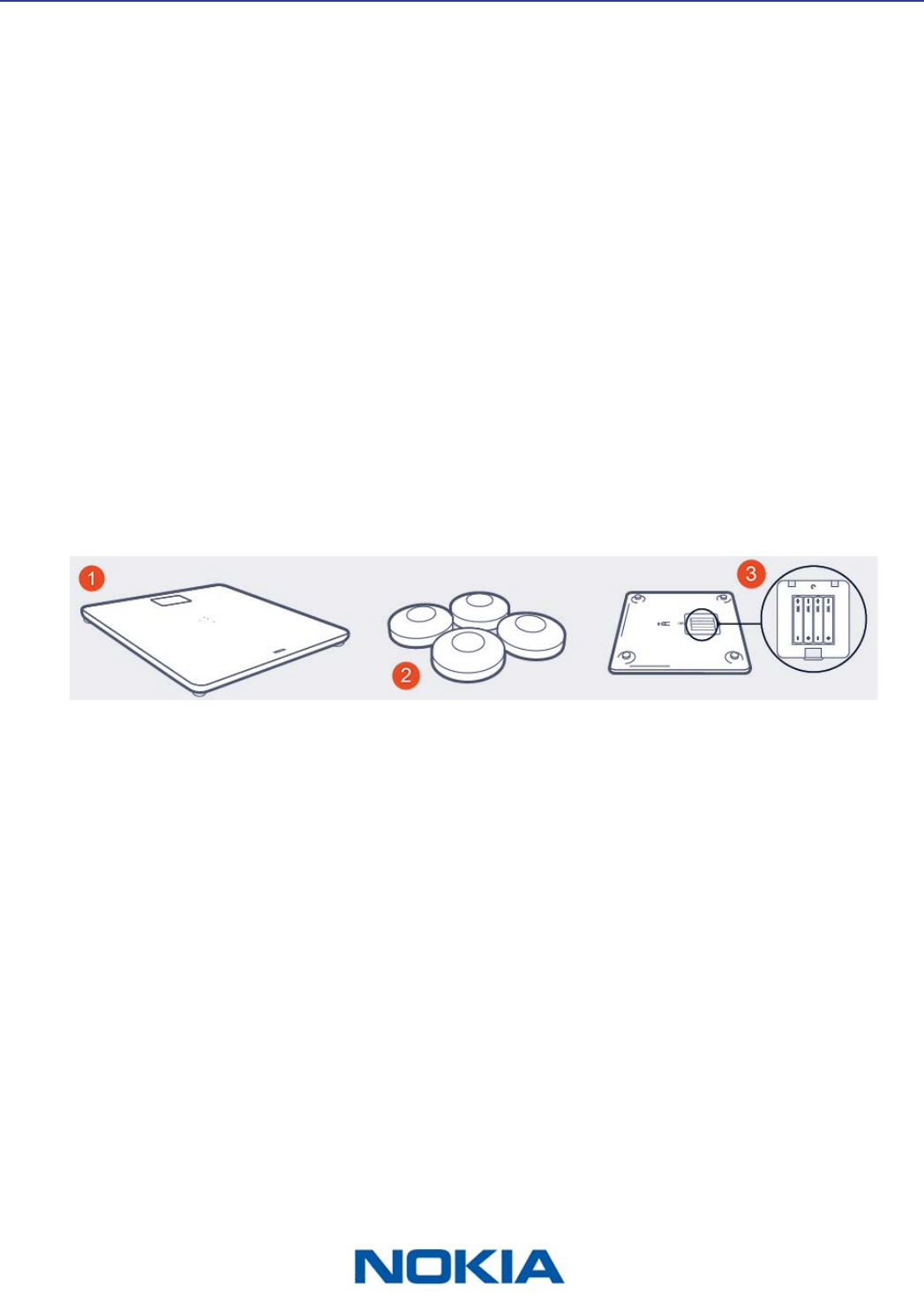 (1)Nokia Body (2)Carpet feet (3)Batteries (inserted)